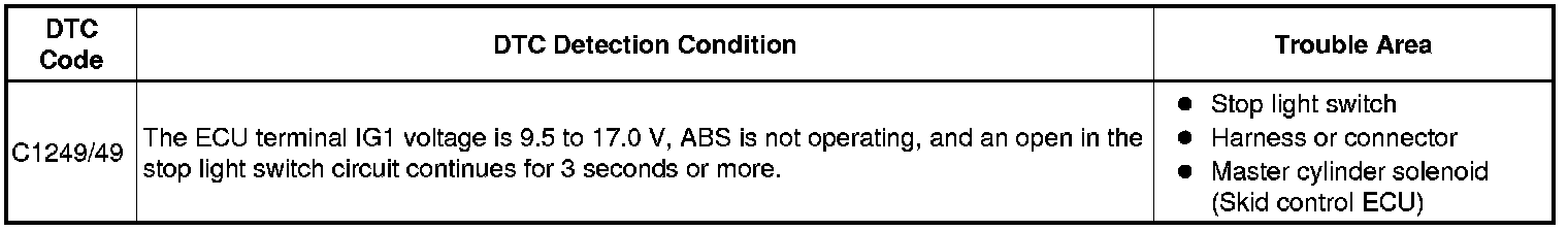 DTC C1249/49 - Open in Stop Light Switch Circuit