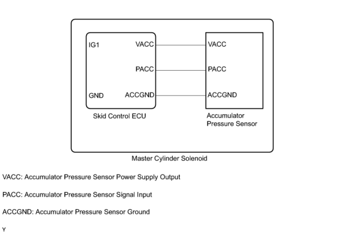 The accumulator pressure sensor is connected to the skid control ECU in the master cylinder solenoid.
