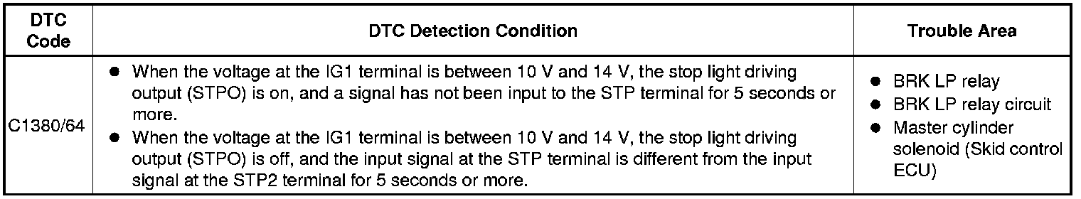 DTC C1380/64 - Stop Light Control Relay Malfunction