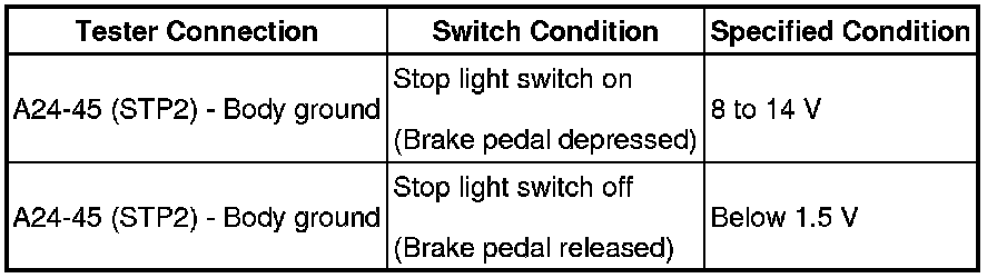 1. CHECK STOP LIGHT SWITCH OPERATION