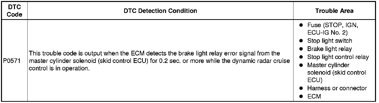 CRUISE CONTROL: DYNAMIC RADAR CRUISE CONTROL SYSTEM: P0571: Stop Light Switch Circuit Malfunction