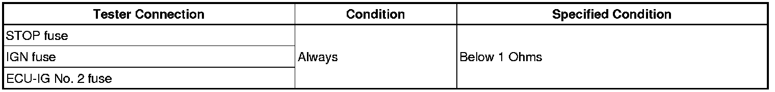 1. INSPECT FUSE (STOP, IGN, ECU-IG No. 2)