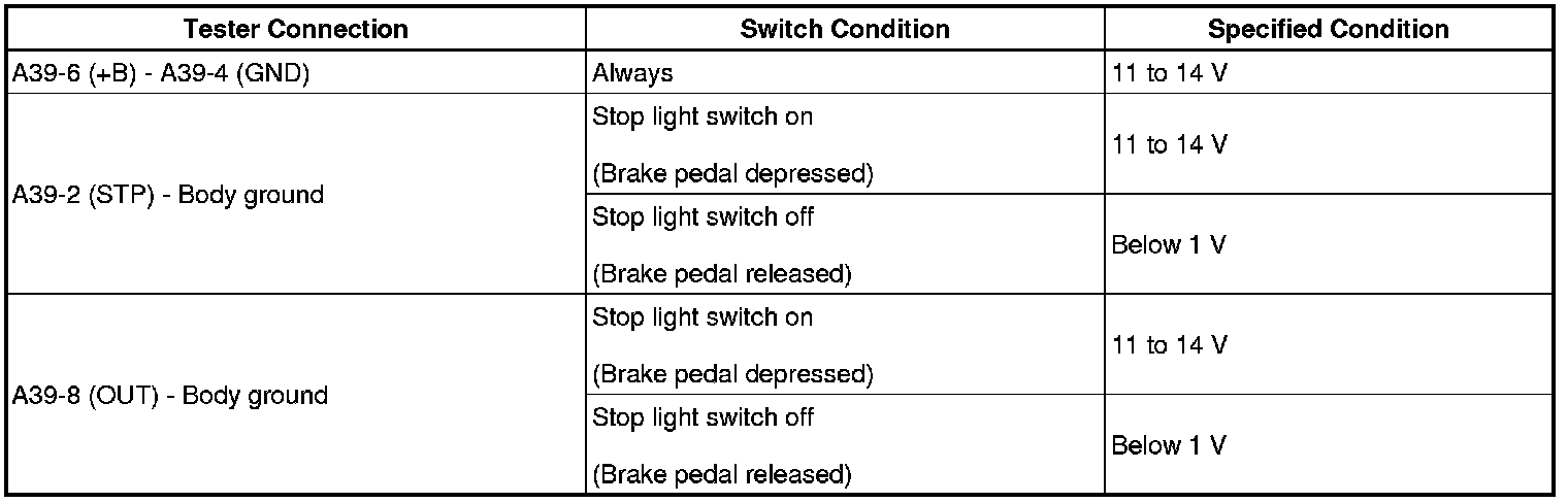 (a) Remove the stop light control relay with its connector still connected Testing and Inspection.