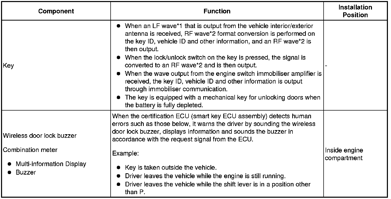 - *1: LF waves (134 kHz) check if the key is in the vehicle interior or not.
