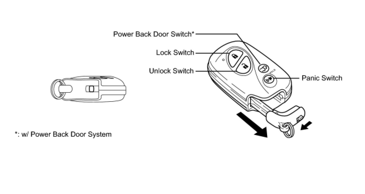 Push the lock/unlock/panic/power back door* switch on the key to operate each function.