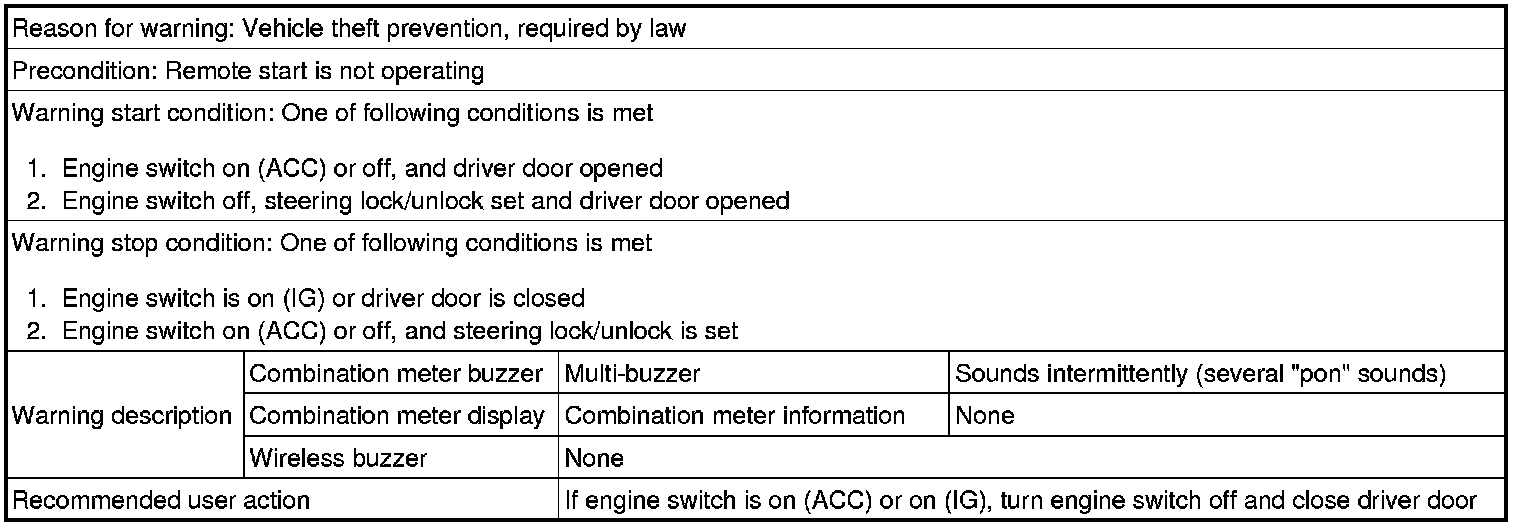 (1) Steering lock/unlock set, driver door is opened and movement away from vehicle is attempted