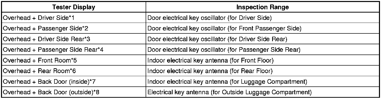 - *2: Perform the same inspection above for the door electrical key oscillator (front passenger seat outside transmitter).