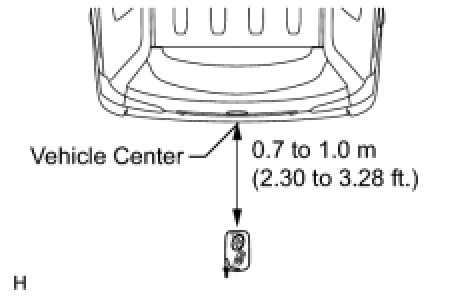 Hold the electrical key transmitter at the same height as the rear bumper upper surface and aligned with the center of the rear of the vehicle, as shown in the illustration.