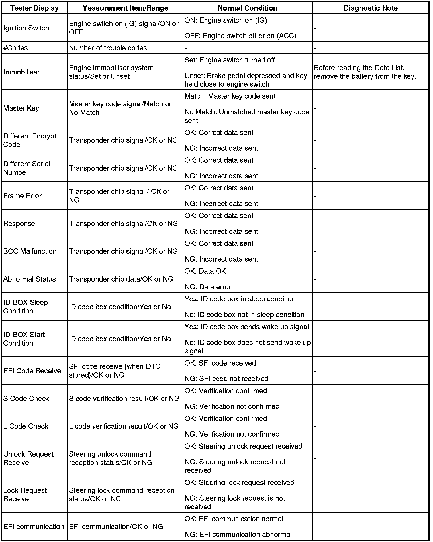 THEFT DETERRENT / KEYLESS ENTRY: ENGINE IMMOBILIZER SYSTEM: DATA LIST / ACTIVE TEST