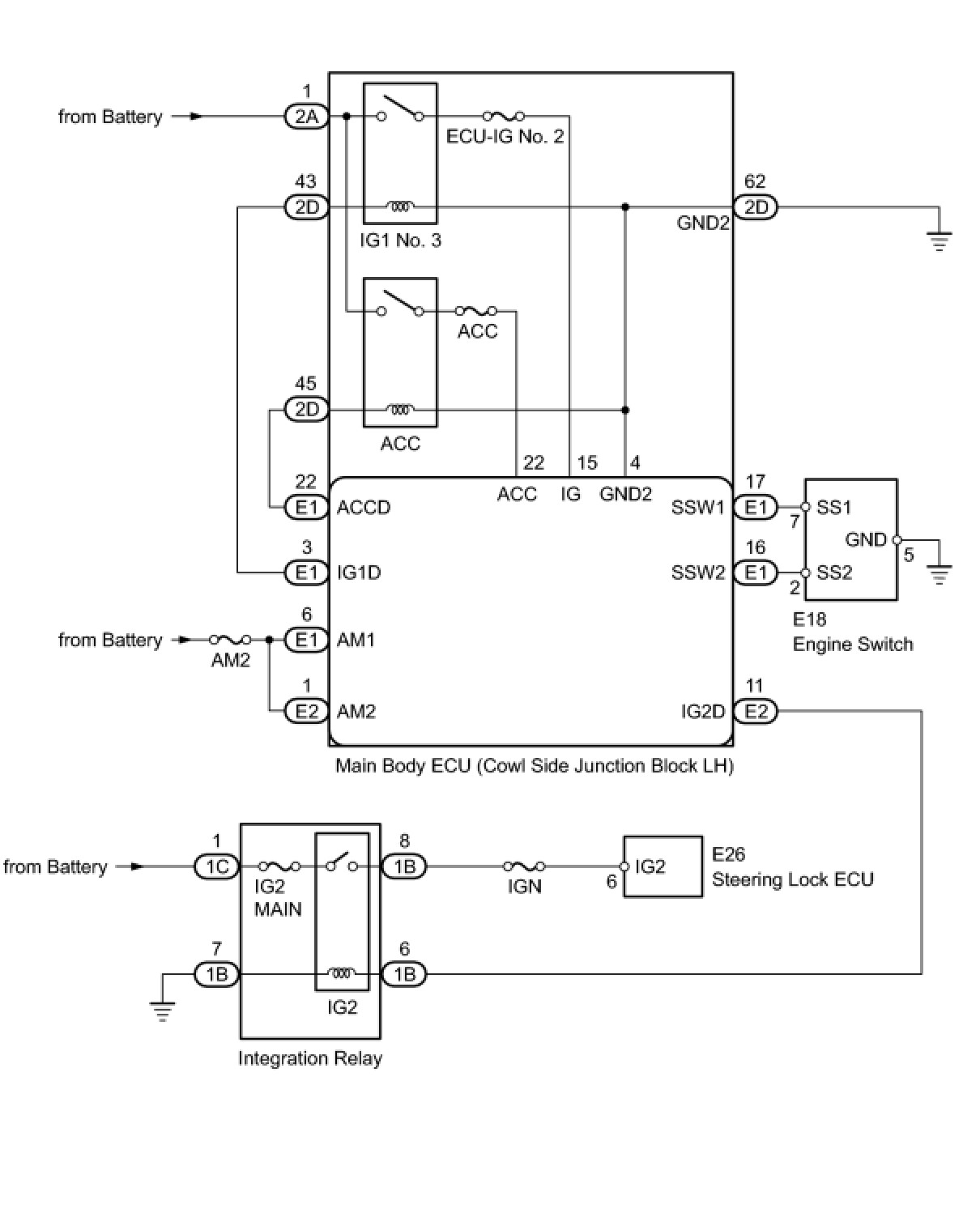 10. CHECK HARNESS AND CONNECTOR (INTEGRATION RELAY (IG2 RELAY) - STEERING LOCK ECU AND BATTERY)