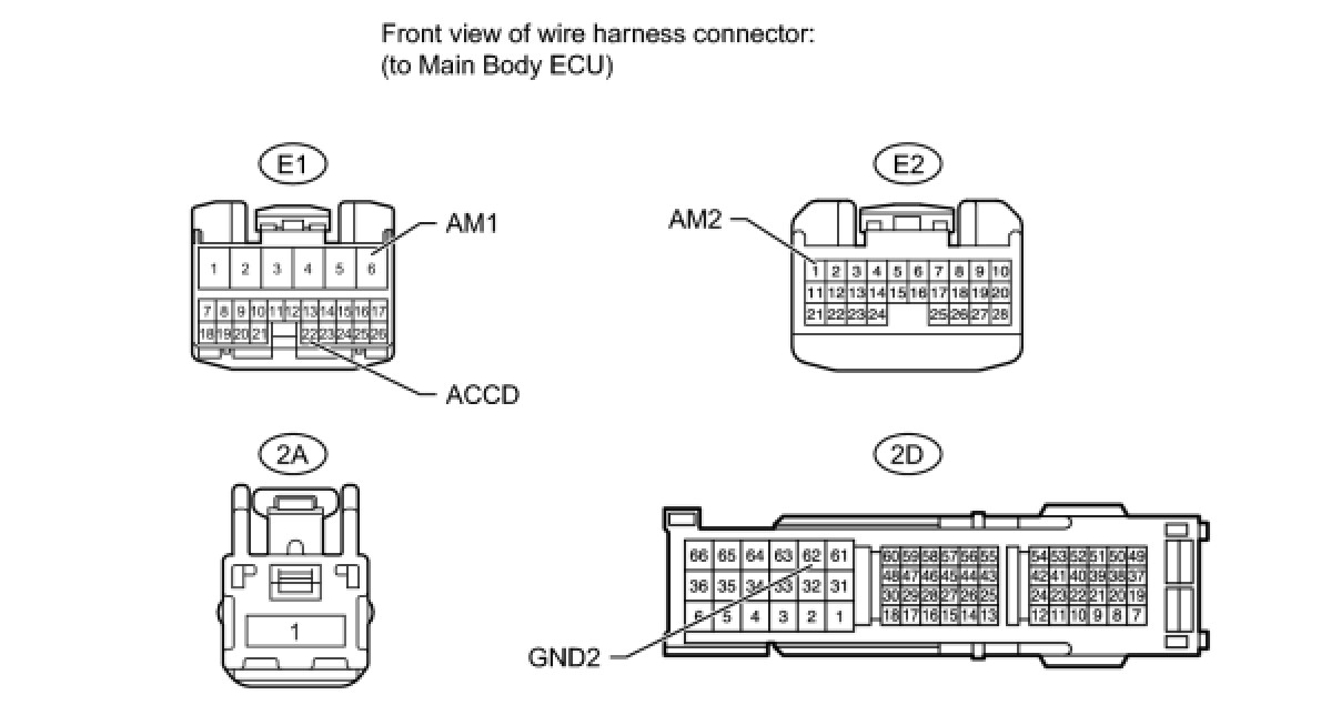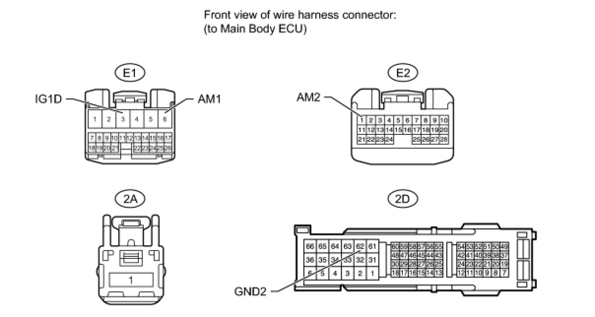 (a) Disconnect the E1, E2, 2A and 2D main body ECU connectors.