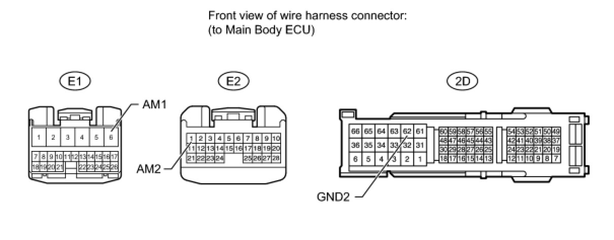 (a) Disconnect the E1, E2 and 2D main body ECU connectors.