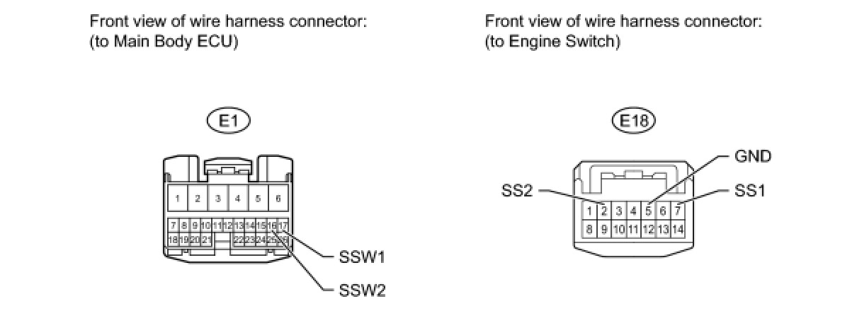 14. CHECK HARNESS AND CONNECTOR (ENGINE SWITCH - MAIN BODY ECU AND BODY GROUND)