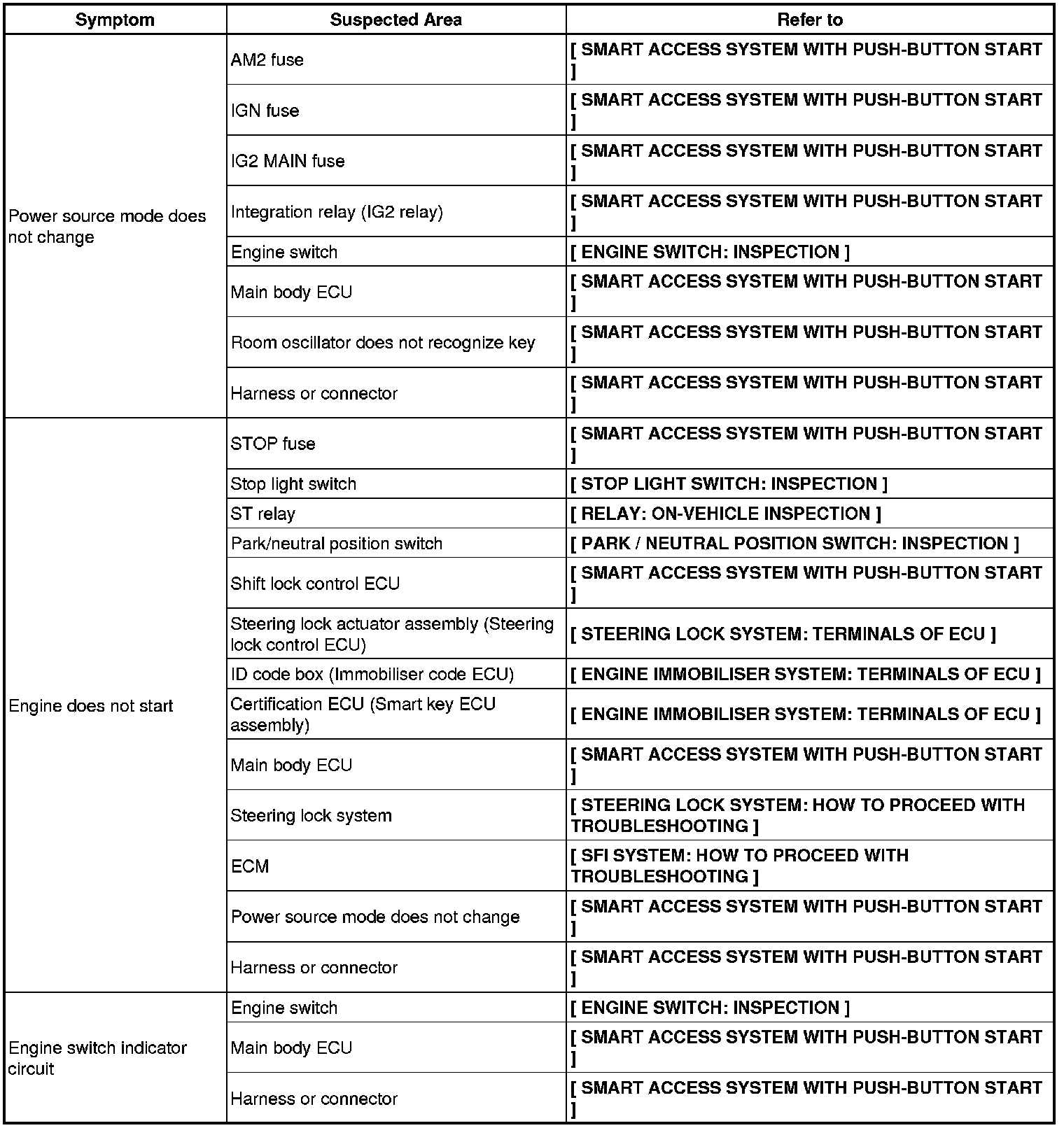 THEFT DETERRENT / KEYLESS ENTRY: SMART ACCESS SYSTEM WITH PUSH-BUTTON START (for Start Function): PROBLEM SYMPTOMS TABLE