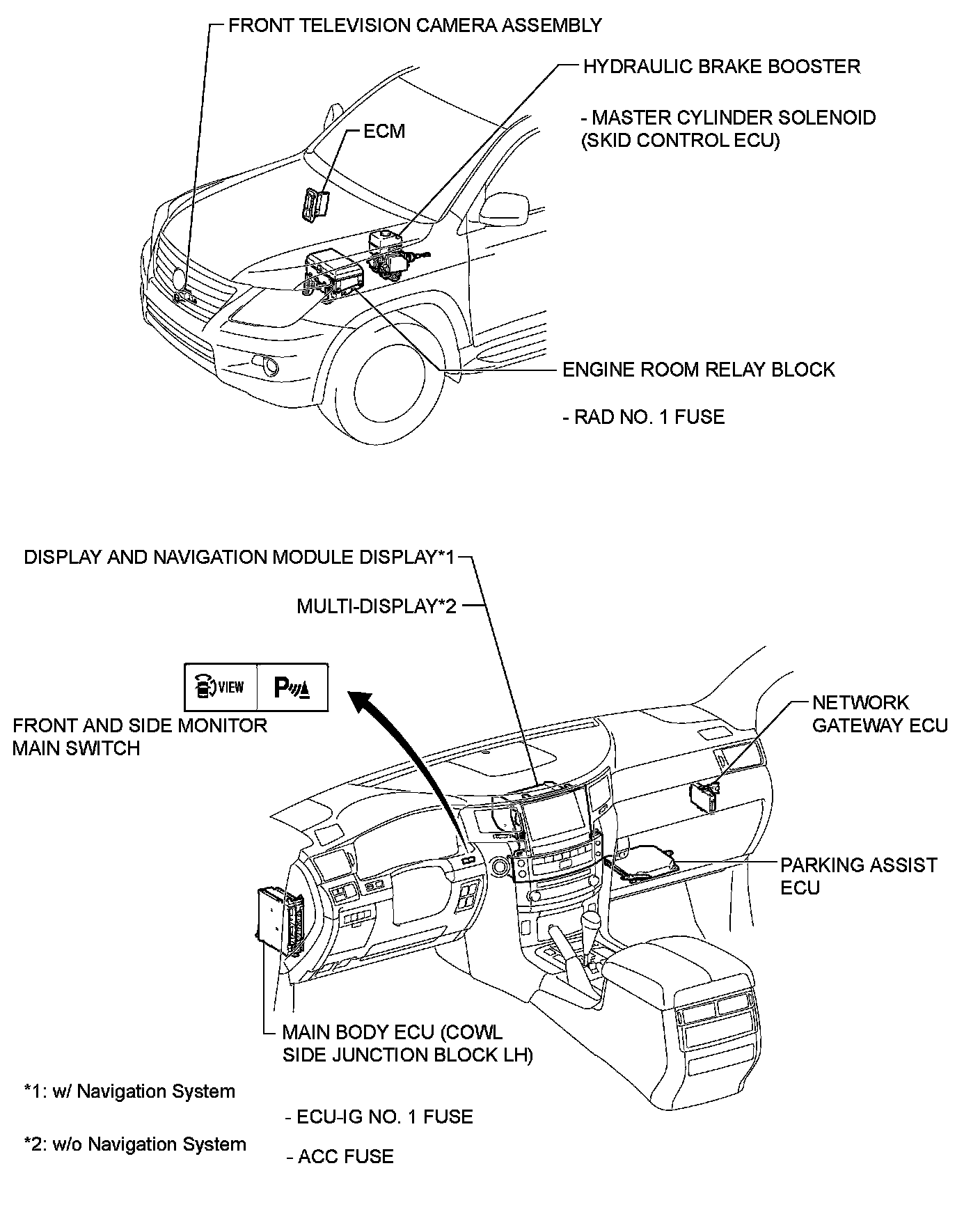 PARK ASSIST / MONITORING: WIDE VIEW FRONT MONITOR SYSTEM: PARTS LOCATION
