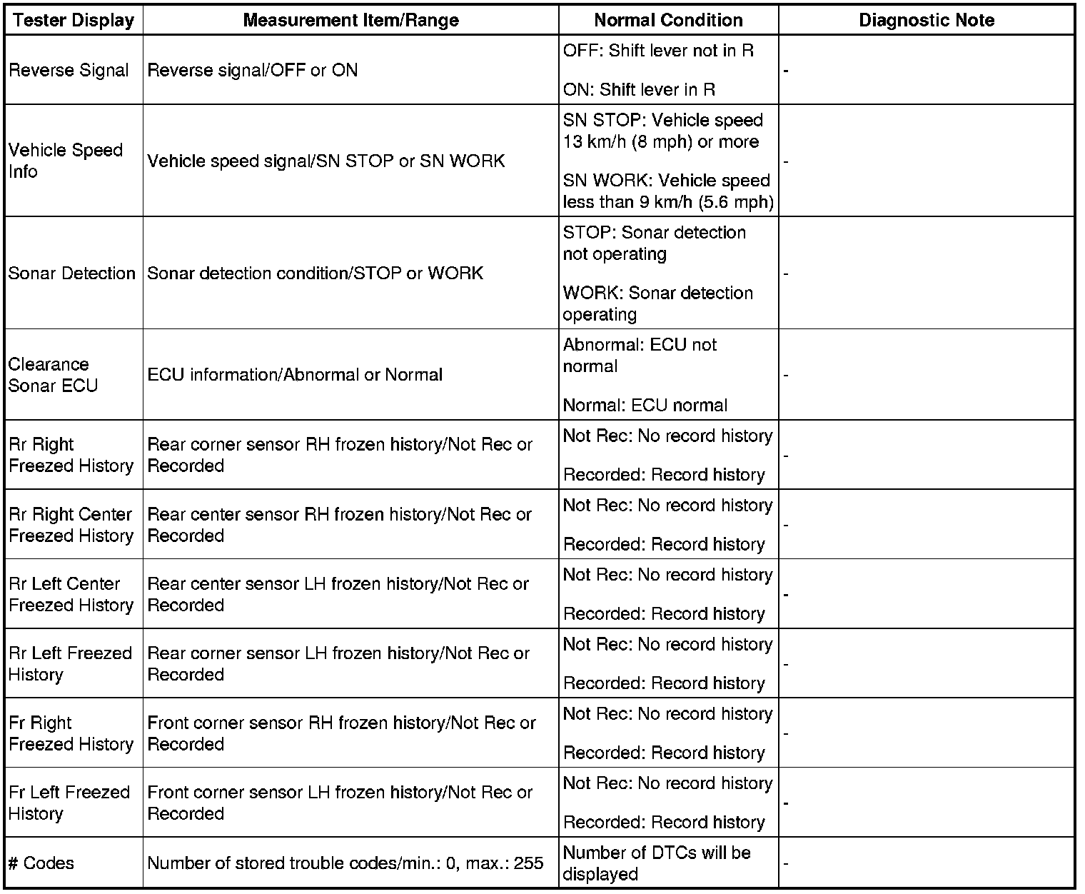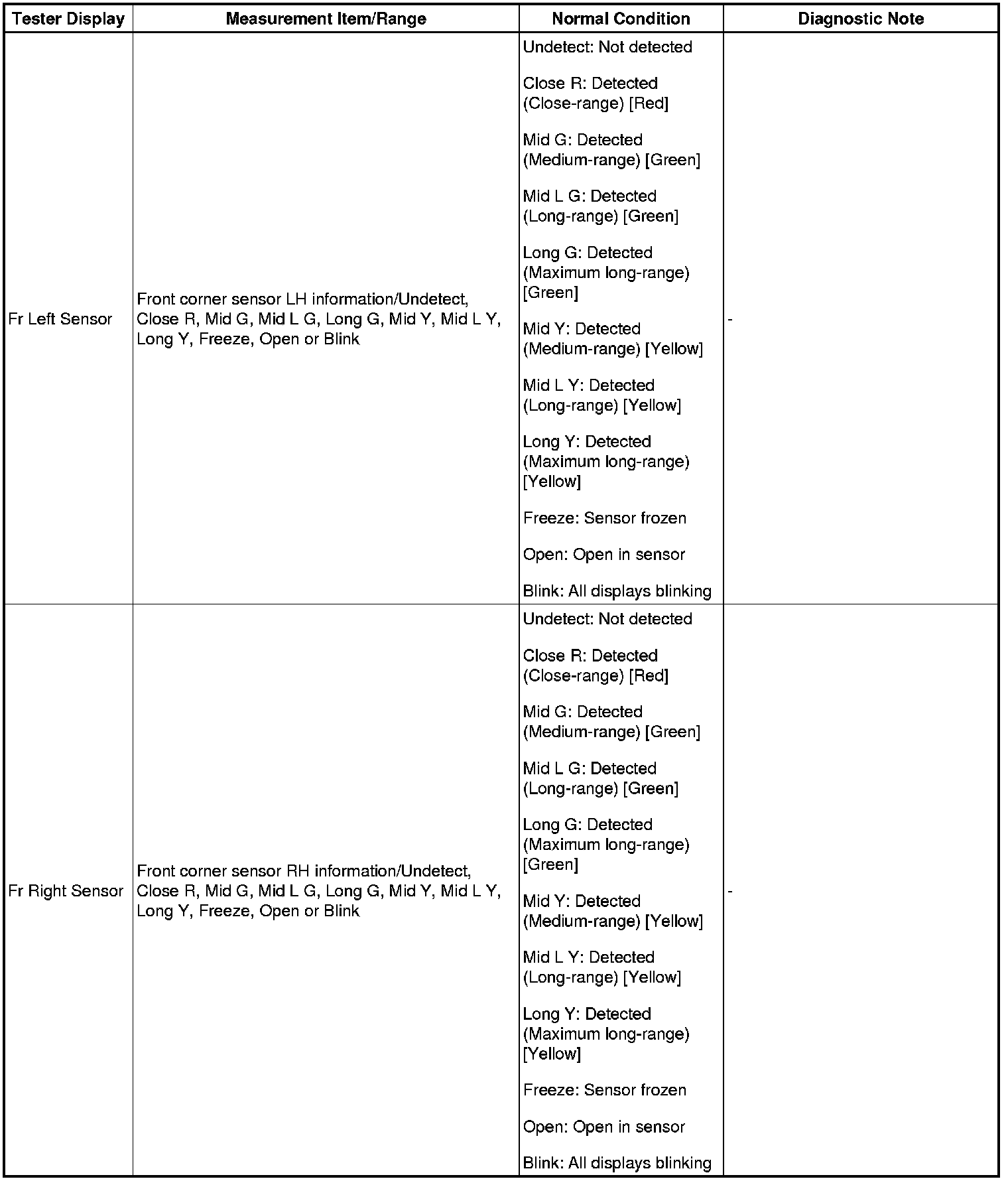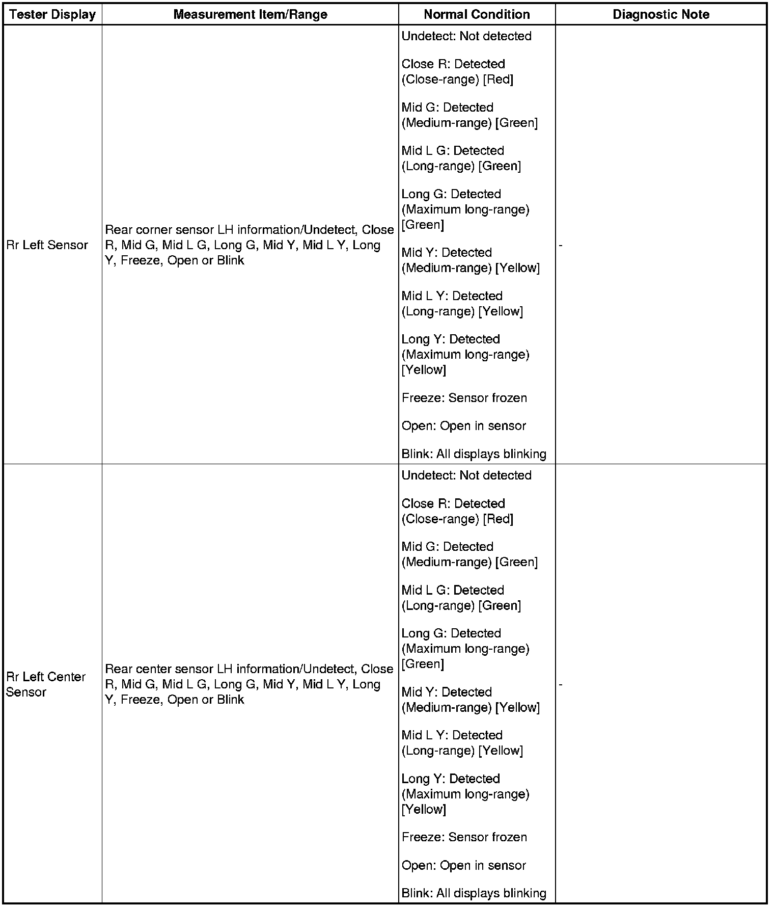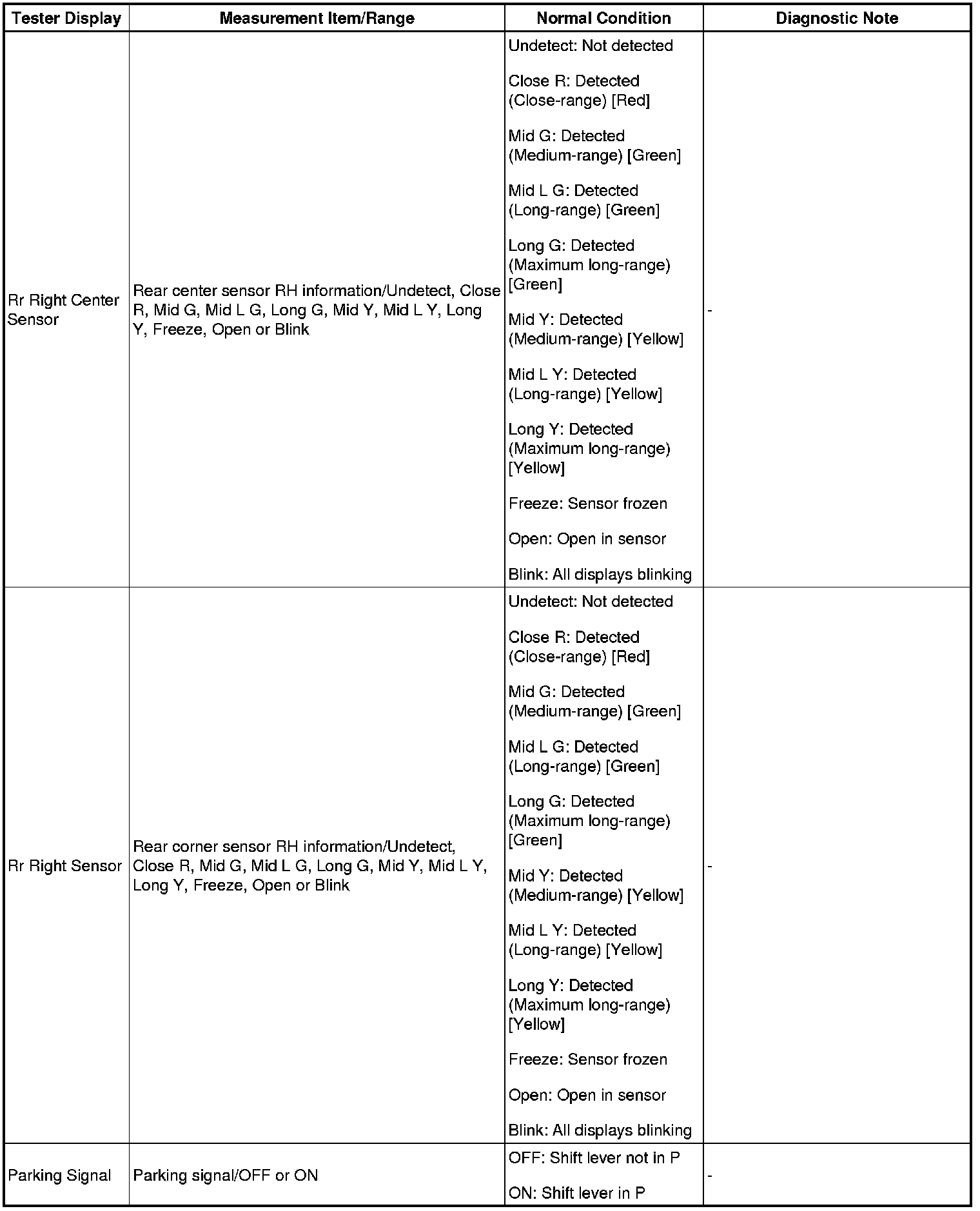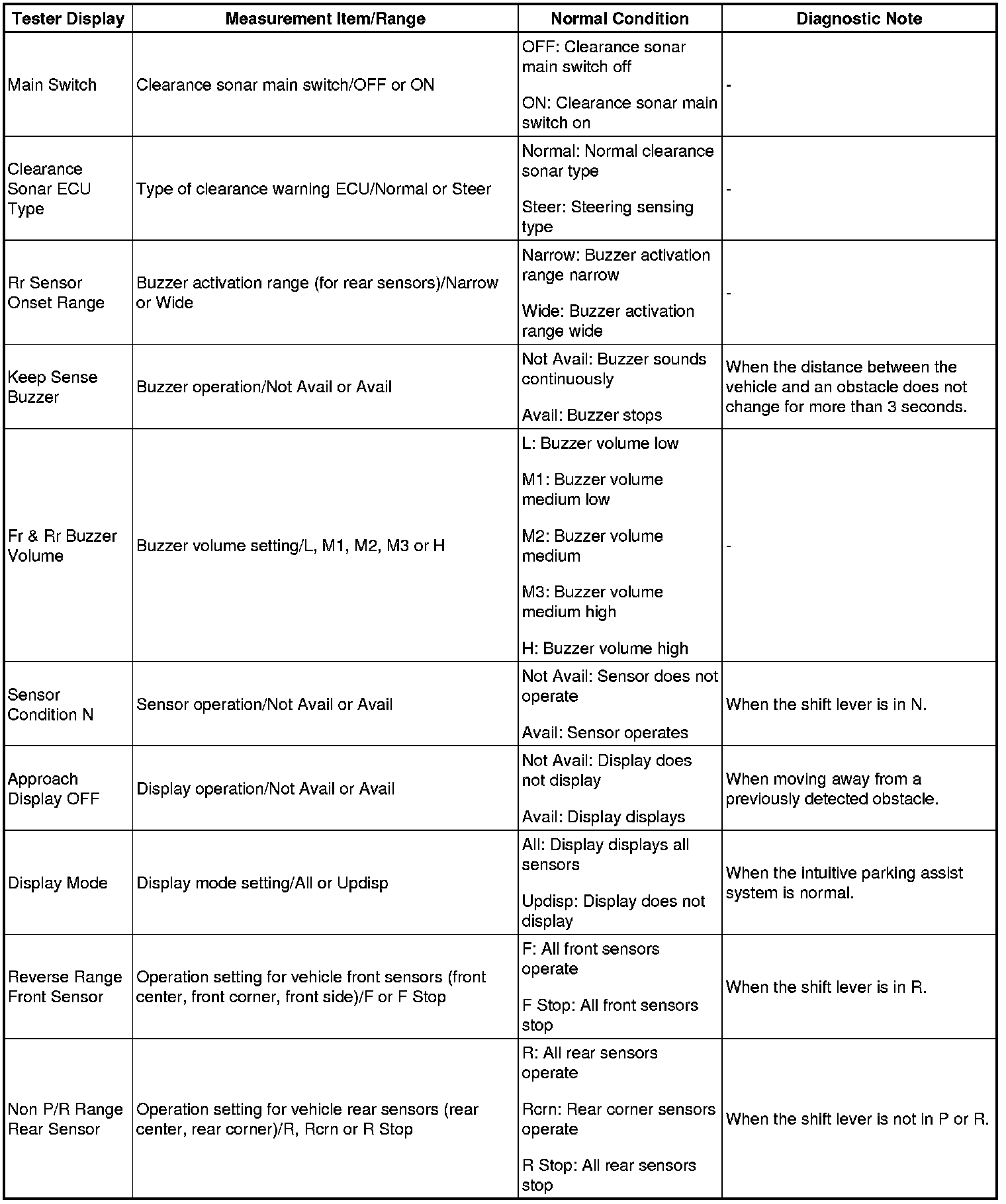 PARK ASSIST / MONITORING: INTUITIVE PARKING ASSIST SYSTEM: DATA LIST / ACTIVE TEST