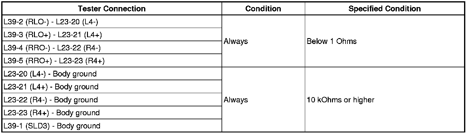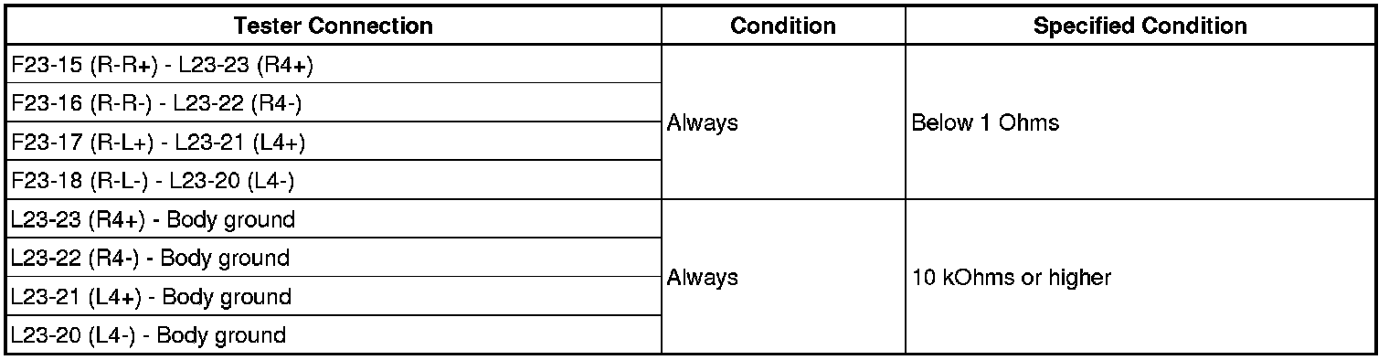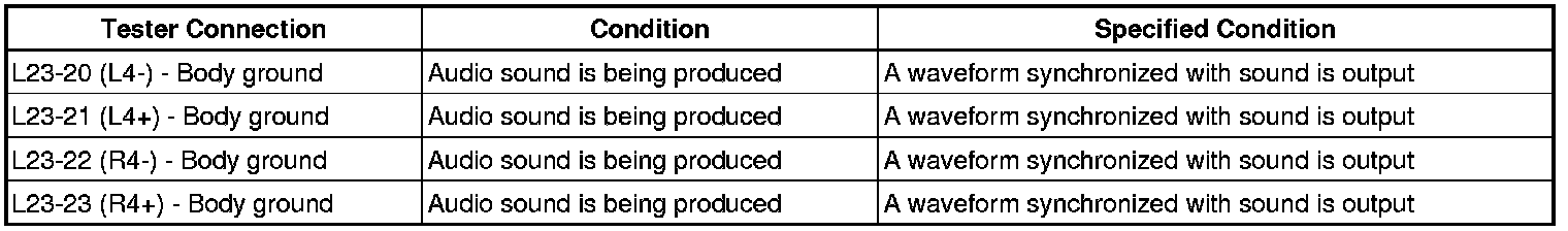 (b) Using an oscilloscope, check the signal waveform between each terminal and the body ground according to the conditions shown in the chart below.
