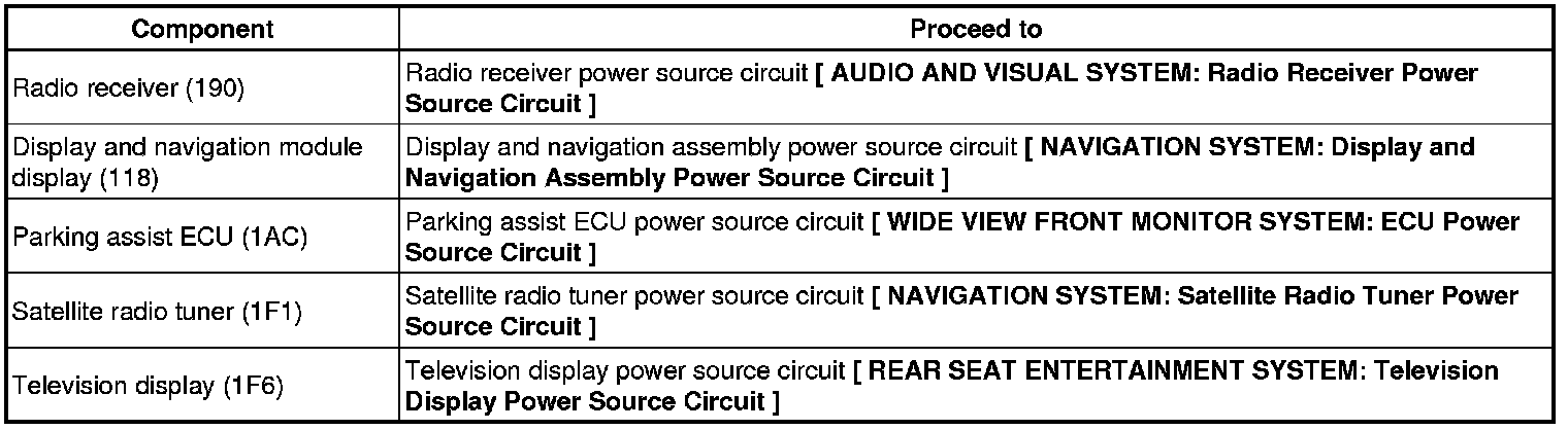 2. CHECK POWER SOURCE CIRCUIT OF COMPONENT SHOWN BY SUB-CODE