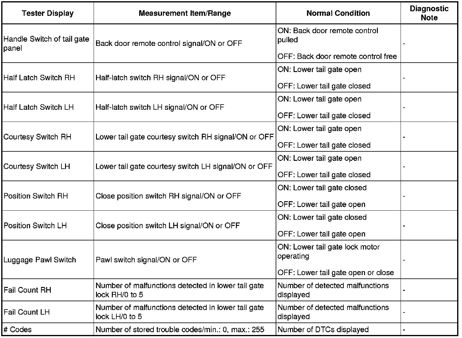 DOOR / HATCH: TAIL GATE CLOSER SYSTEM: DATA LIST / ACTIVE TEST