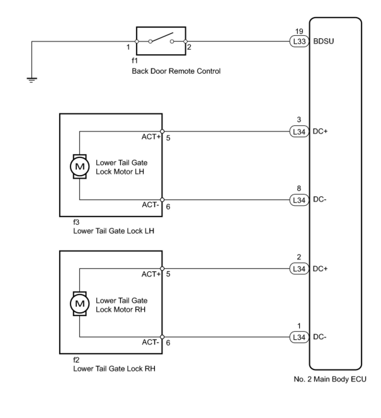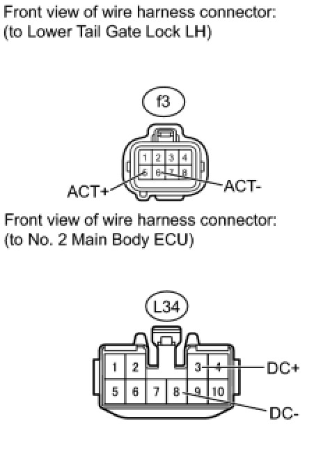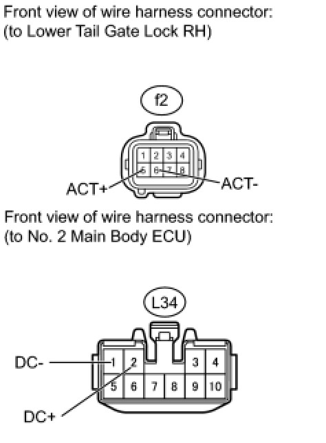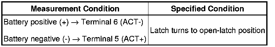 (3) Apply battery voltage and check the operation of the lower tail gate lock motor RH.