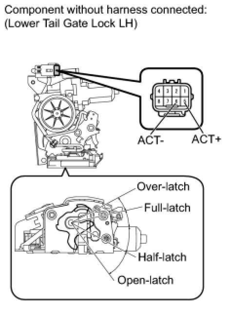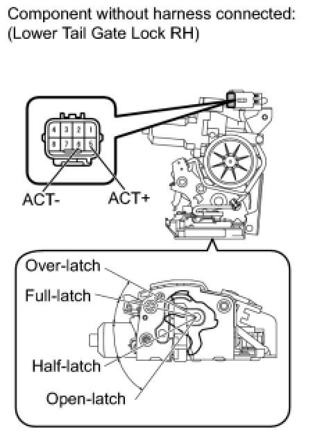(2) Set the lower tail gate lock RH to the full-latch position.