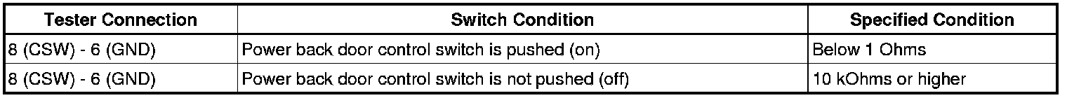 DOOR / HATCH: POWER BACK DOOR CONTROL SWITCH (for Back Door): INSPECTION