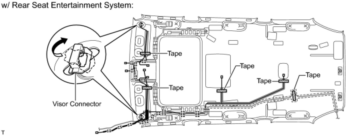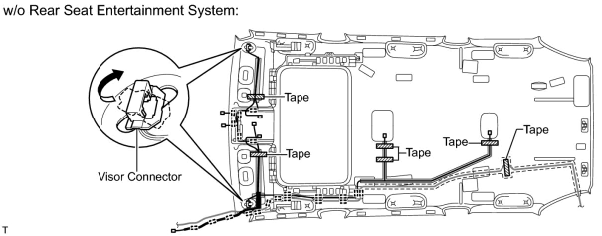 (2) Remove the 5 pieces of tape from the roof headlining.