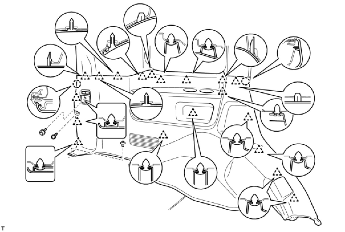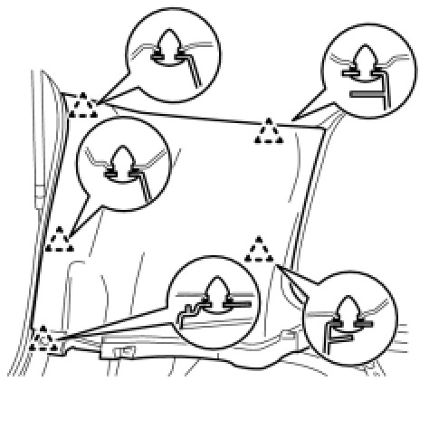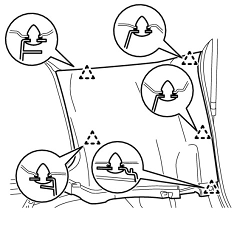 (2) Attach the 5 clips to install the rear upper pillar garnish.