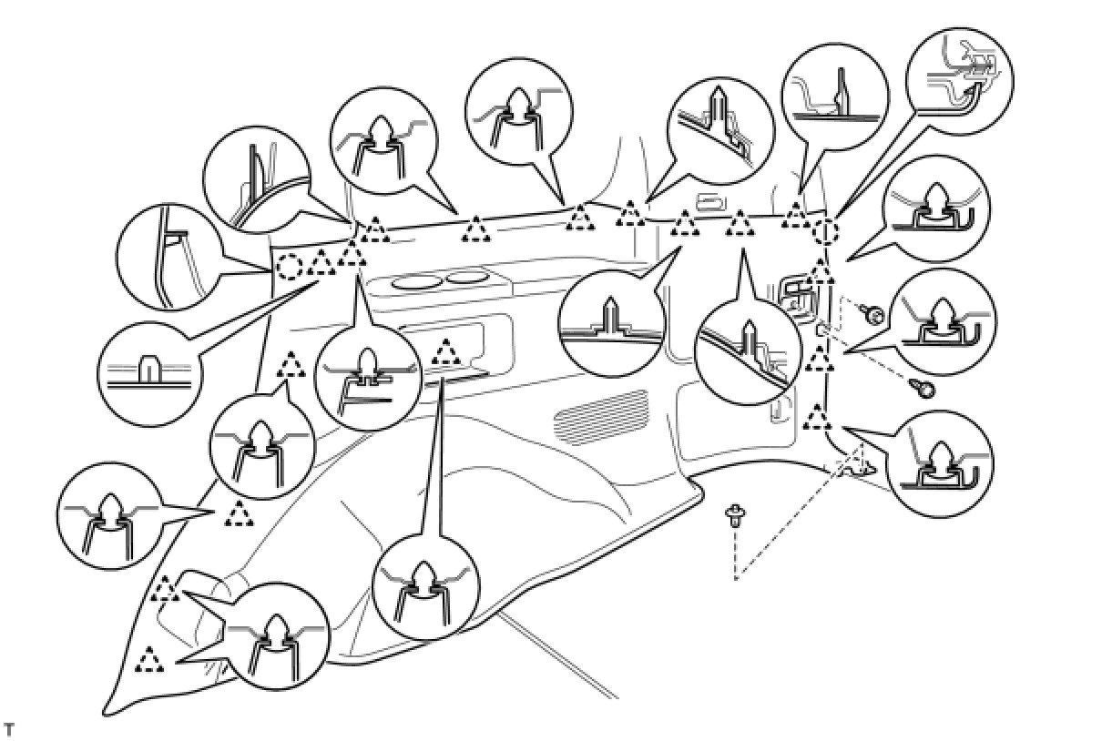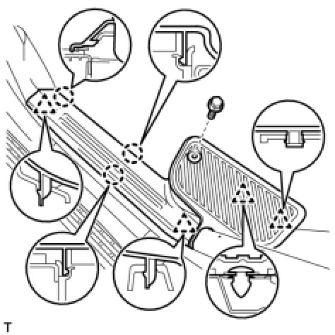 (2) Attach the 7 claws and 4 clips to install the scuff plate.