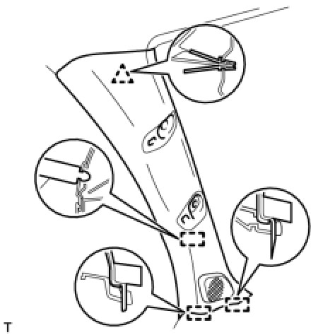 (a) Attach the 5 clips to install the rear upper pillar garnish.