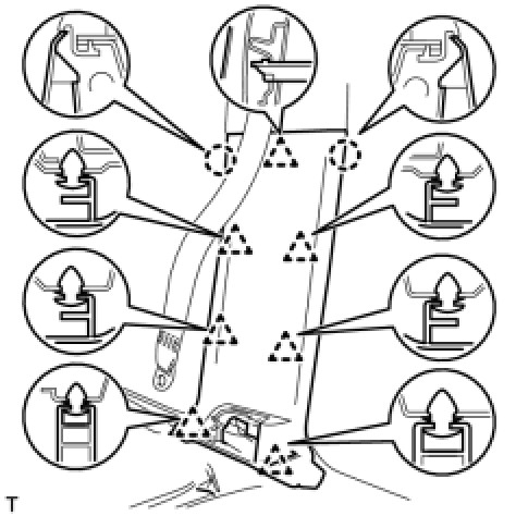 (a) Attach the 2 claws and 7 clips to install the center lower pillar garnish.