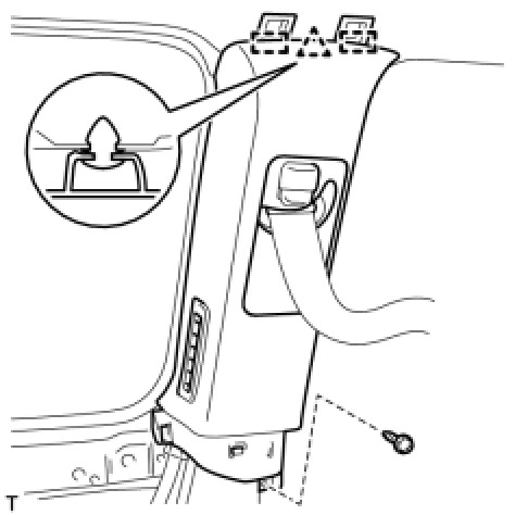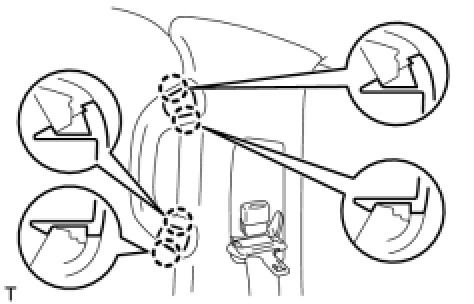 (d) Attach the 2 claws to close the seat belt shoulder anchor cover.