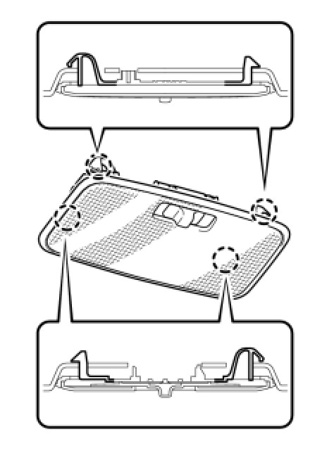 (b) Attach the 4 clips and 2 claws to install the roof console box.