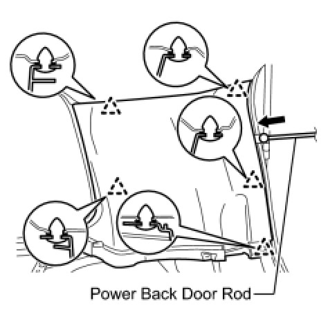 (1) Pass the power back door rod through the rear upper pillar garnish.