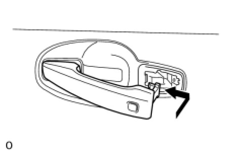 (b) Insert the rear end of the rear door outside handle assembly into the rear door outside handle frame. Next, slide the rear door outside handle assembly toward the front of the vehicle to install it.
