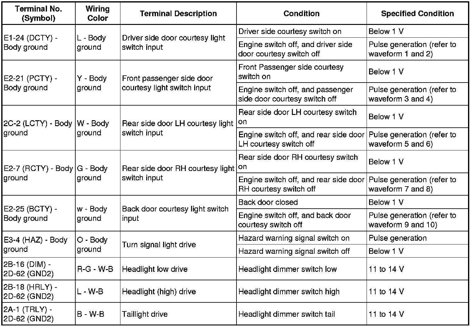 DOOR LOCK: WIRELESS DOOR LOCK CONTROL SYSTEM: TERMINALS OF ECU