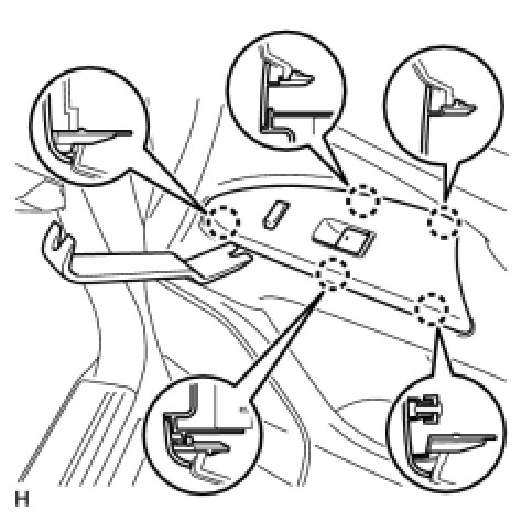 (a) Using a moulding remover, detach the 5 claws and remove the front upper armrest base panel RH.