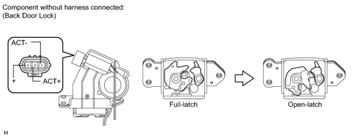 If the result is not as specified, replace the back door lock assembly.