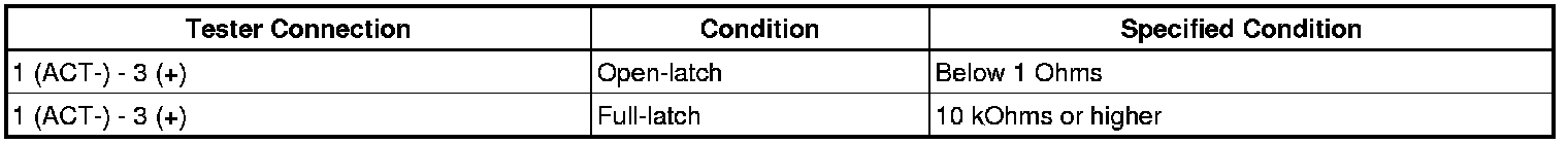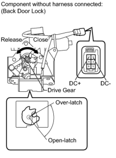 - If the result is not as specified, replace the back door lock assembly.