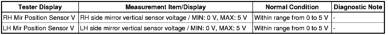 (a) Check the Data List for proper functioning of the mirror position sensor Scan Tool Testing and Procedures.