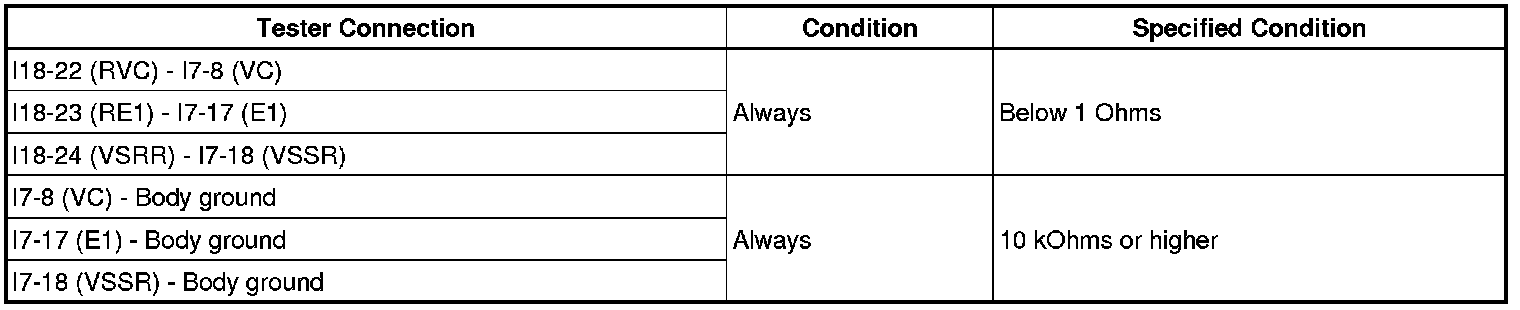 (c) Measure the resistance according to the value(s) in the table below.