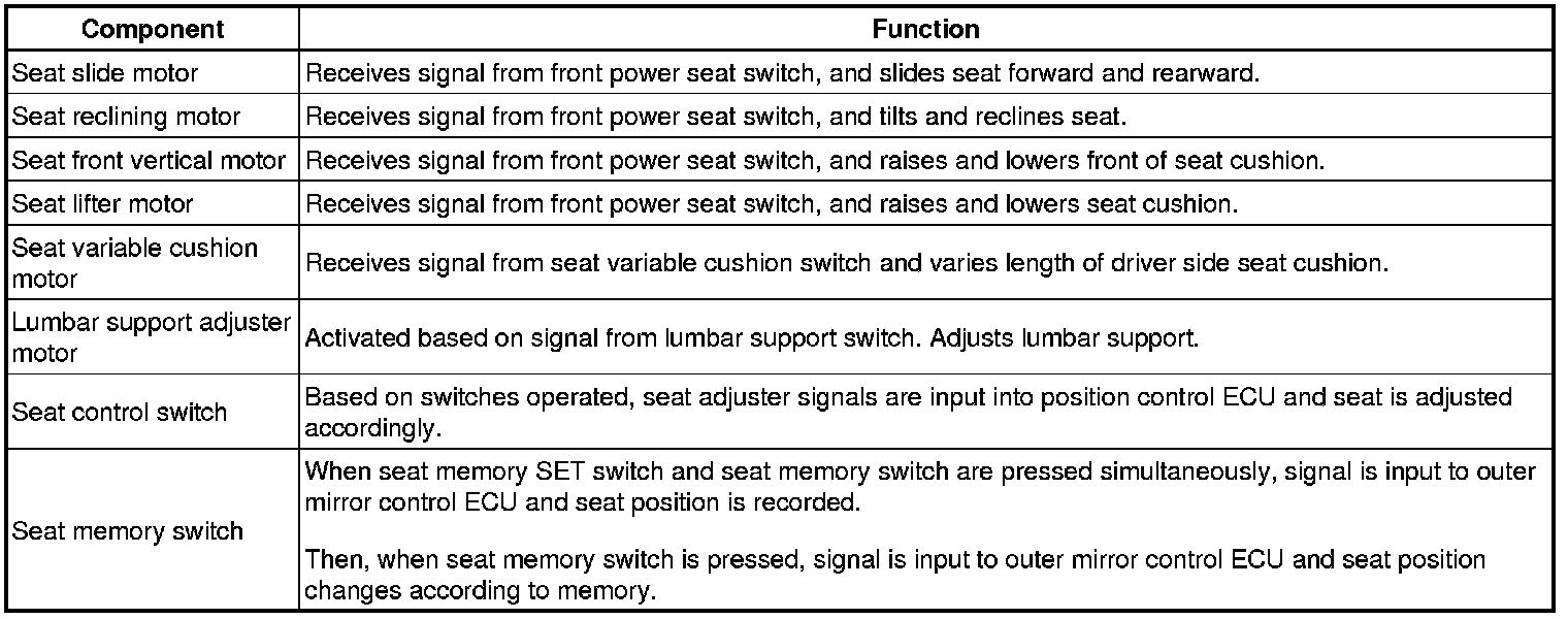 SEAT: FRONT POWER SEAT CONTROL SYSTEM: SYSTEM DESCRIPTION