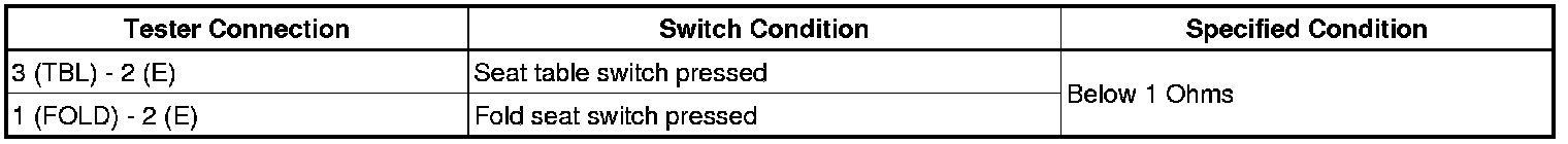 If the result is not as specified, replace the fold seat switch assembly.