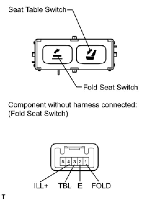 (b) Apply battery voltage to the switch connector, and check that the fold seat switch illuminates.