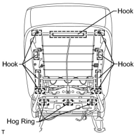 (d) Attach the 4 hooks to install the seatback spring.