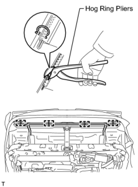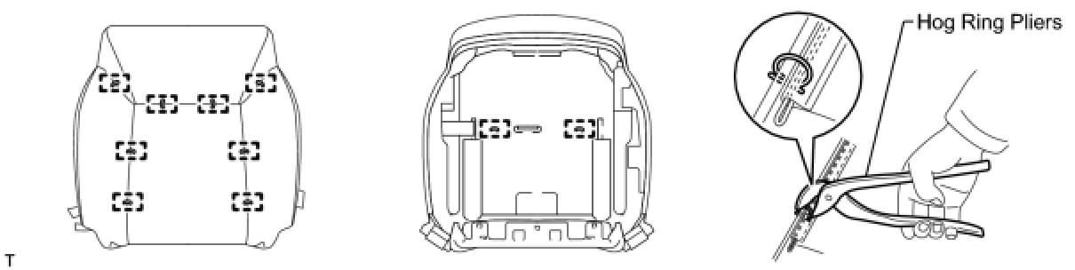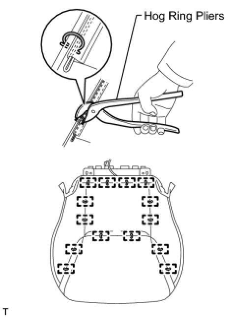 (d) Using hog ring pliers, install 3 new hog rings to the seat frame.
