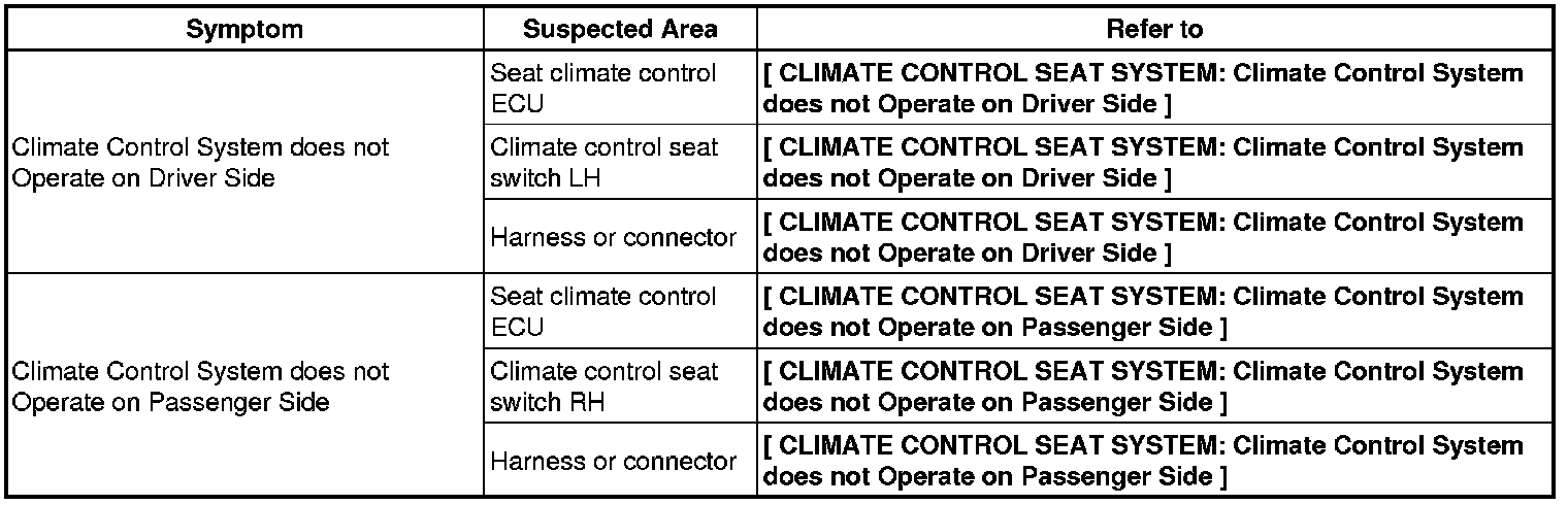 SEAT: CLIMATE CONTROL SEAT SYSTEM: PROBLEM SYMPTOMS TABLE