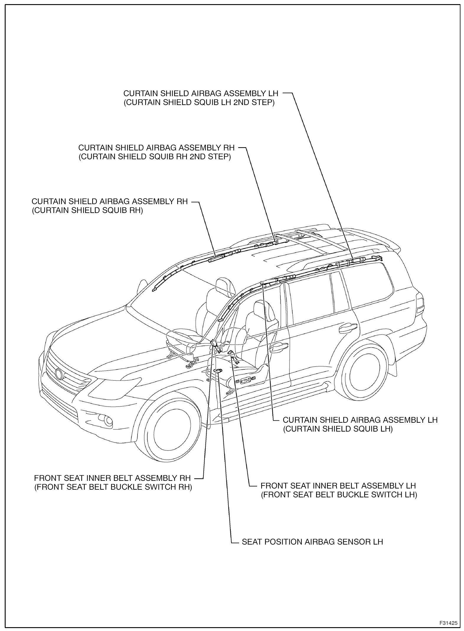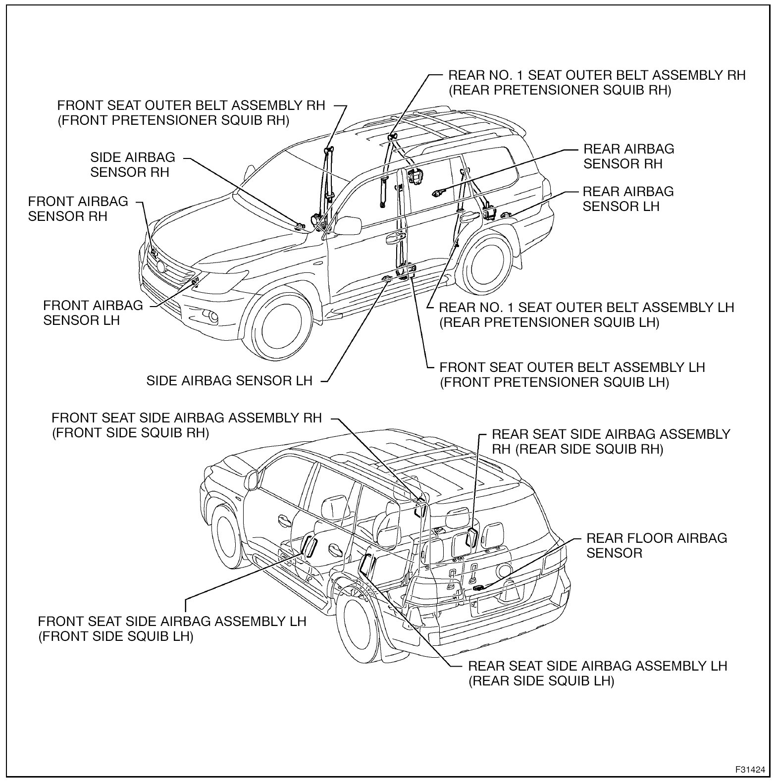4. Do not allow the front airbag sensors, side airbag sensors, rear airbag sensors, center airbag sensor, rear floor airbag sensor or seat position sensor to become heated to high temperatures.