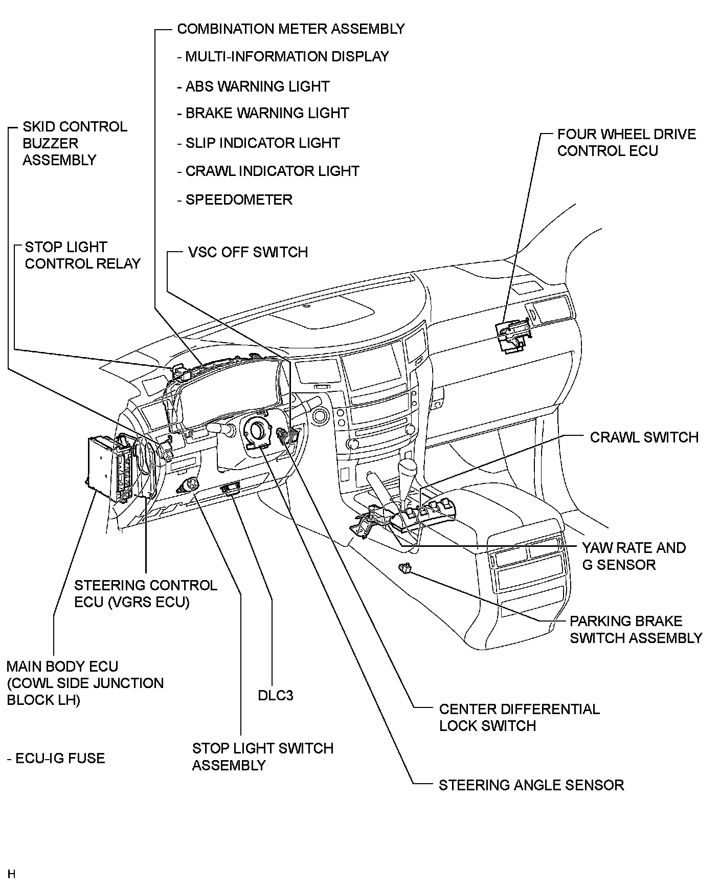 BRAKE CONTROL / DYNAMIC CONTROL SYSTEMS: VEHICLE STABILITY CONTROL SYSTEM: PARTS LOCATION