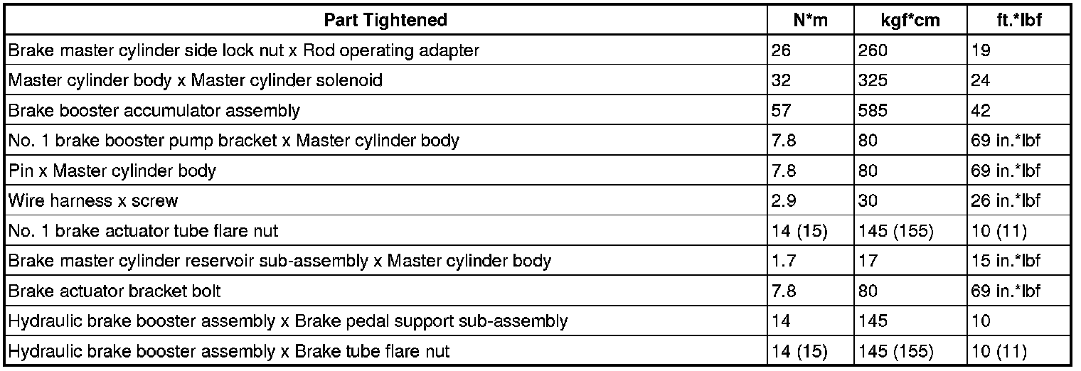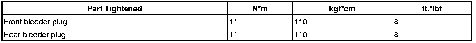 SPECIFICATIONS: BRAKE SYSTEM (OTHER): TORQUE SPECIFICATIONS